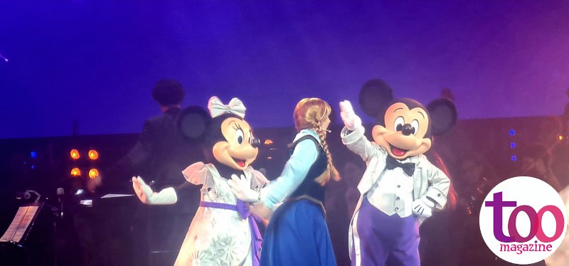 Fueron 29 artistas en escena, entre acróbatas y personajes como: Mickey Mouse y Minnie Mouse, Donald , Pluto e de historias como: Moana, Frozen, la Sirenita , Mery Poppins y otros que fueron parte de este magico show que duró 2 horas y que puso a cantar y a soñar a todos con cada una de las interpretaciones.