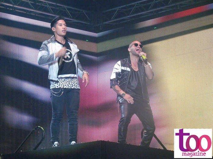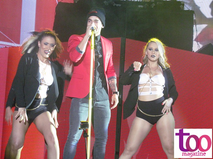 Maluma fue el primero en presentarse y encendió a tarima desde lo alto donde empezó a cantar y bailar causando furor ante un público de en su mayoría de jóvenes chicas que no dejaban de gritarle al artista Colombiano. Y el no dudo en complacerlas con canciones como: «Temperatura» , «Carnaval»,» Te viví», entre otros y puso a bailar a todos.