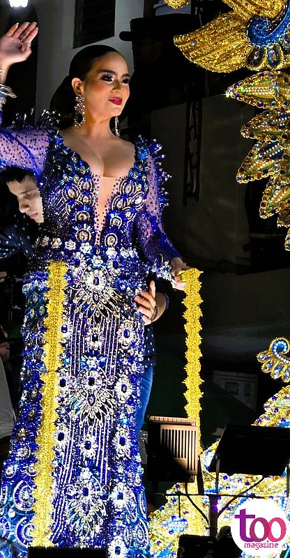 Por su parte, la Tuna de Calle Abajo de Las Tablas vivió una noche inolvidable con la coronación de su sexagésima cuarta reina, S.R.M. Sofía Gabriela Ureña Amores, quien lució un impresionante traje en tonos azul y dorado, diseñado por el renombrado Luis Carlos Carrasco.