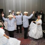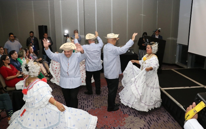 Al inicio, el conjunto típico del Canal de Panamá deleitó a los presentes con bailes tradicionales panameños, enalteciendo la riqueza folclórica que distingue al país, moviendo a todos de sus asientos para bailar con ellos, en un preámbulo antes de los discursos protocolares.