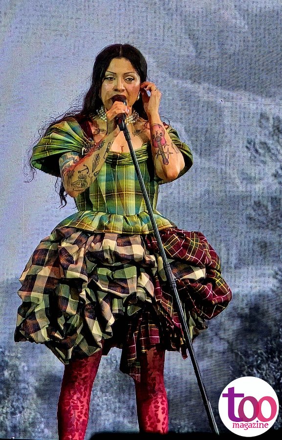 La fiesta comenzó antes del inicio del concierto, con fragmentos de «La gata bajo la lluvia» de Rocío Dúrcal y «Todos me miran» de Gloria Trevi resonando en el recinto. La cuatro veces ganadora del Latin Grammy abrió su repertorio con canciones como «Tenochtitlán», «Obra de Dios», «Metamorfósis» y «Autopoiética», el tema que da título a su álbum lanzado en 2023, con el que ha recorrido varios países.