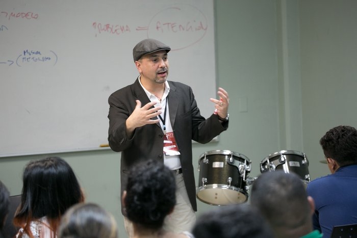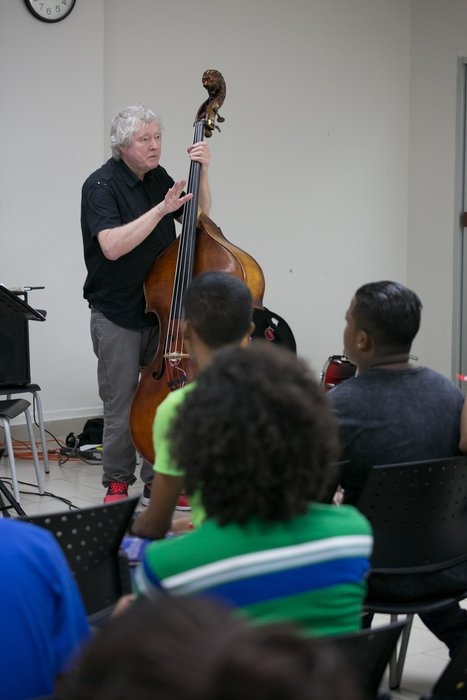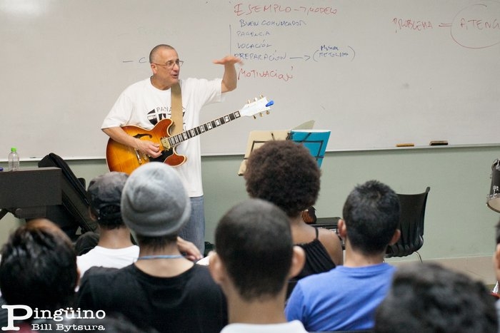 En las clínicas de este martes, los jóvenes escucharon atentos las experiencias vividas y los conocimientos de Rudresh Mahanthappa (India), Arild Andersen Trio (Noruega), el taller de guitarra de Tom Patitucci (USA), la Pedagogía en la Música del saxofonista italiano Marco Pignataro, del Berklee Global Jazz Institute; entre otras.